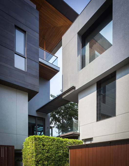 Текстовое описание предоставлено архитекторами. На земельном участке около 2,0 Рай на улице Паттанакарн, Бангкок, это частная эксклюзивная резиденция для большой семьи. Состоят из трех домов, каждый из которых находится в своем уединении, но соединен между собой общей зоной и бассейном. В соответствии с функциональными требованиями семьи, общая площадь составляет почти 3000 кв. М, что делает здание в высоту до 4 этажей.